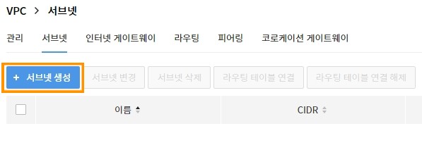 [Toast Console] - [Network] - [VPC] - [서브넷] - [서브넷 생성]