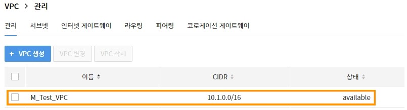 - 이름 : M_Test_VPC #생성할 VPC 이름 입력