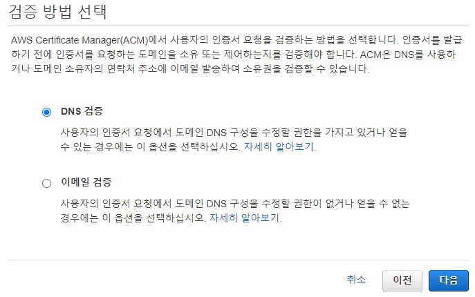 [검증 방법 선택] # 도메인 소유자 검증 방법을 선택